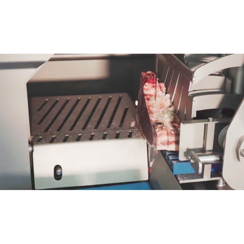 Con la sierra automática PW SAW de corte en continuo, podrás obtener cortes a un peso controlado según parámetros de grosor y peso preestablecido gracias a un sistema de escaneo de las piezas al momento de ser procesadas.