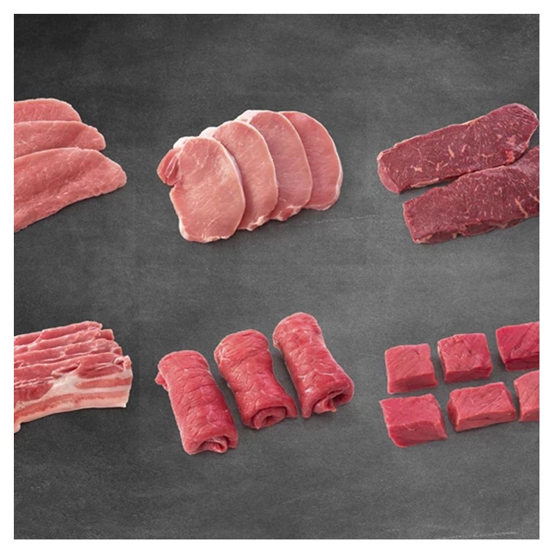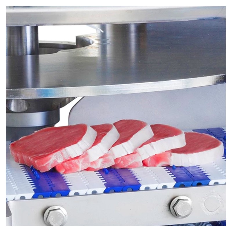 Diseñado para cortar carne fresca en porciones de peso fijo, cubos y tiras con forma y espesor uniformes, el V-Cut 240 es un cortador de porciones altamente flexible para proveedores minoristas y de servicios de alimentos.