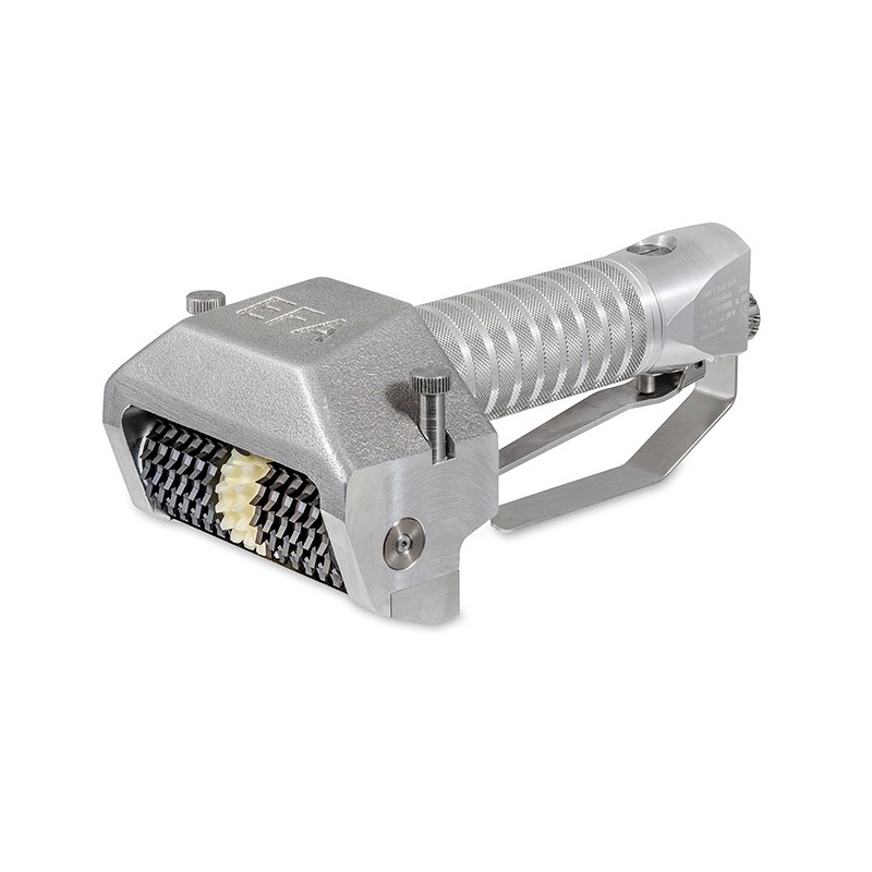 El descortezador manual EFA 900 está diseñado para procesar carne de cerdo, cortes de carne ahumada y seca. Este equipo toma la corteza de la carne y la arrastra por encima de la cuchilla. A su vez se compone de dos partes separadas en el centro por un engranaje helicoidal de tornillo sin fin.