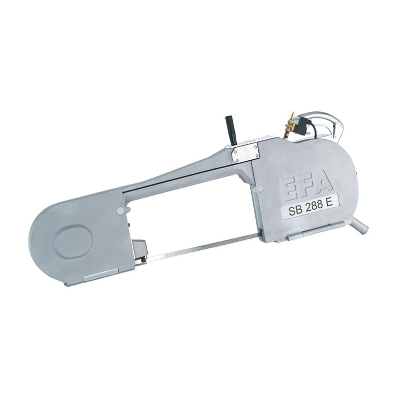 La sierra SB 288 E se utiliza en plantas medianas, siendo indicada para cortar cerdos y ganado. Para su funcionamiento debe conectarse a red eléctrica y combinarse con un equilibrador de resorte y así contrarrestar su peso. Además, dispone de una conexión de agua fría que ayuda a la refrigeración de la cinta de la sierra.