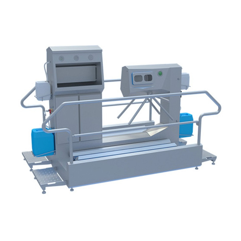 Las estaciones de higiene de la gama Star Clean All in One Mono permiten una limpieza y desinfección guiada de las suelas de los zapatos y las manos en un espacio muy reducido con una gran capacidad de paso. Además, dispone de una segunda vía con torniquete motorizado para la salida de áreas de producción.