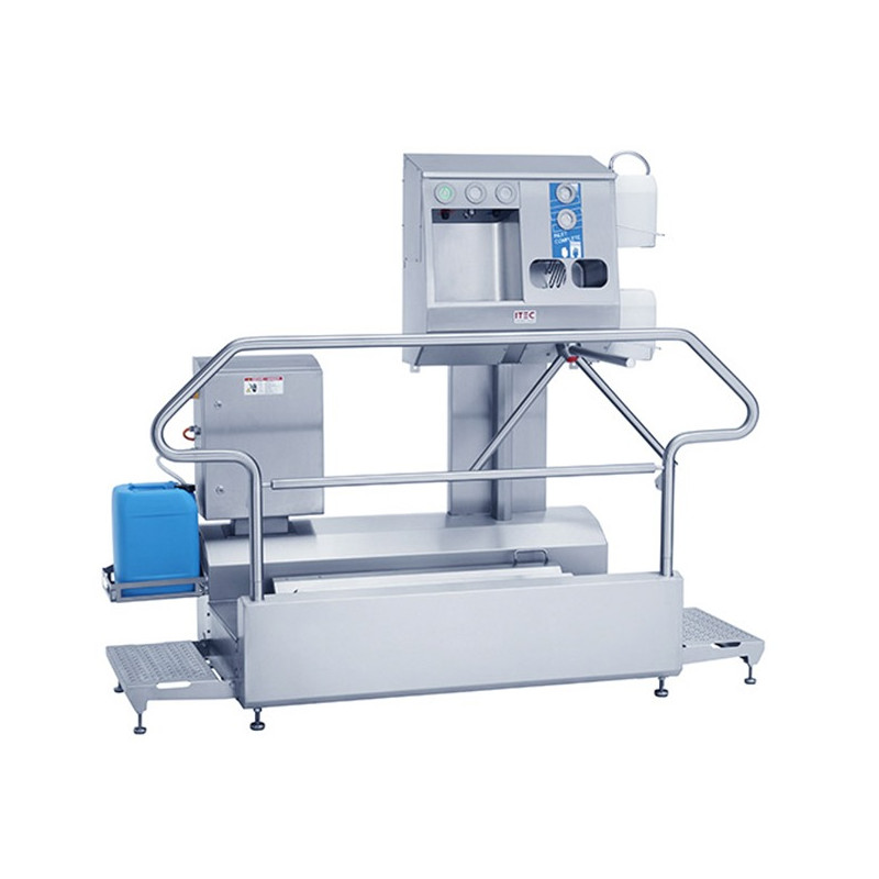 La estación higienizante modular Star Clean IV con Intel Complete 23761/23771 ofrece una limpieza de las suelas por medio de un guiado y una limpieza, humectación y secado completos de las manos.