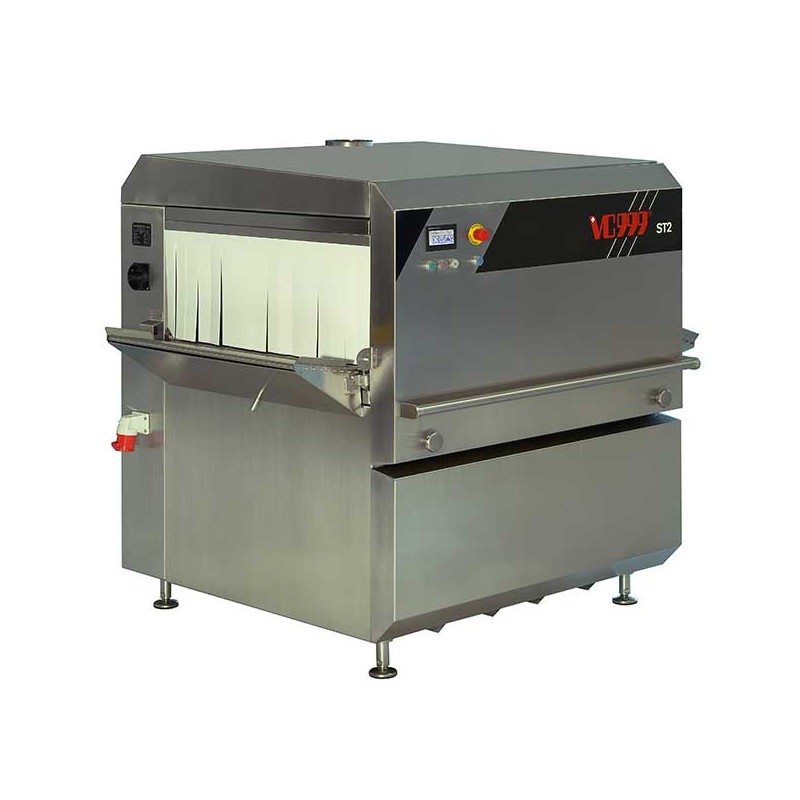 El túnel de retracción VC999 ST2 es un túnel de ducha de paso completamente automático. La retracción de los envases se lleva a cabo con ayuda de una cortina de agua caliente. El paso continuo permite la retracción económica de un gran volumen de producción.