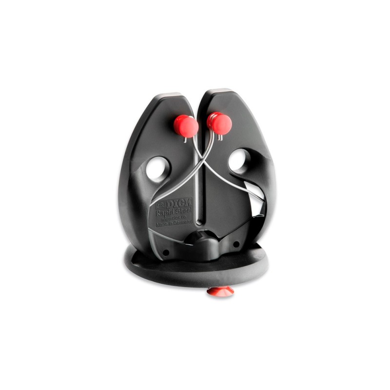 El Afilador Rapid Steel posee un diseño ergonómico que entrega un agarre seguro. Este afilador incorpora resortes de tensión y varillas de afilado de acero inoxidable lo que facilita su mantenimiento. Su forma ergonómica permite un afilado rápido y seguro. Además, puede utilizarse de forma manual o fijarse en el lugar de trabajo por medio de su base con ventosa.