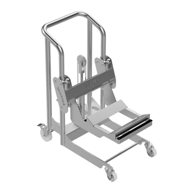 Este carro porta bobinas este fabricado en acero inoxidable, y posee un rápido sistema de elevación hidráulico permitiendo que el trabajo de cambiar las bobinas de las maquinas envasadoras sea ergonómico. Además, este equipo es altamente higiénico, robusto y requiere de una mínima mantención.