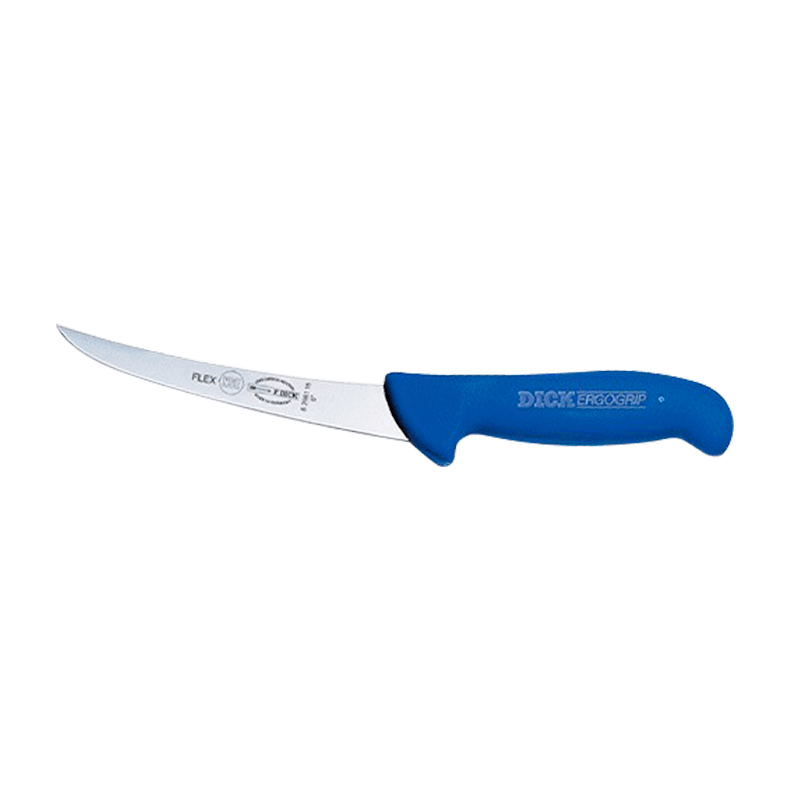 El cuchillo Dehuesador Ergogrip posee una hoja fabricada de acero inoxidable, curva y de 15 cm de largo. Este cuchillo está diseñado para ser usado en industrias, carnicerías y en el hogar, además tiene un mango de plástico ergonómico, antideslizante y con superficie de apoyo para el pulgar, permitiendo manipular el cuchillo de forma eficiente.