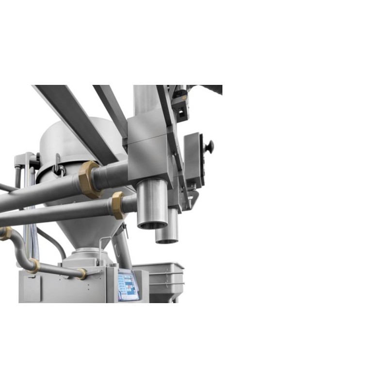La válvula SV 424 es una solución automática para empresas que cortan y porcionan productos con trozos. Esta válvula se caracteriza por el llenado vertical, directamente en moldes u otros recipientes con precisión de gramo, sin tripa ni clipadora.