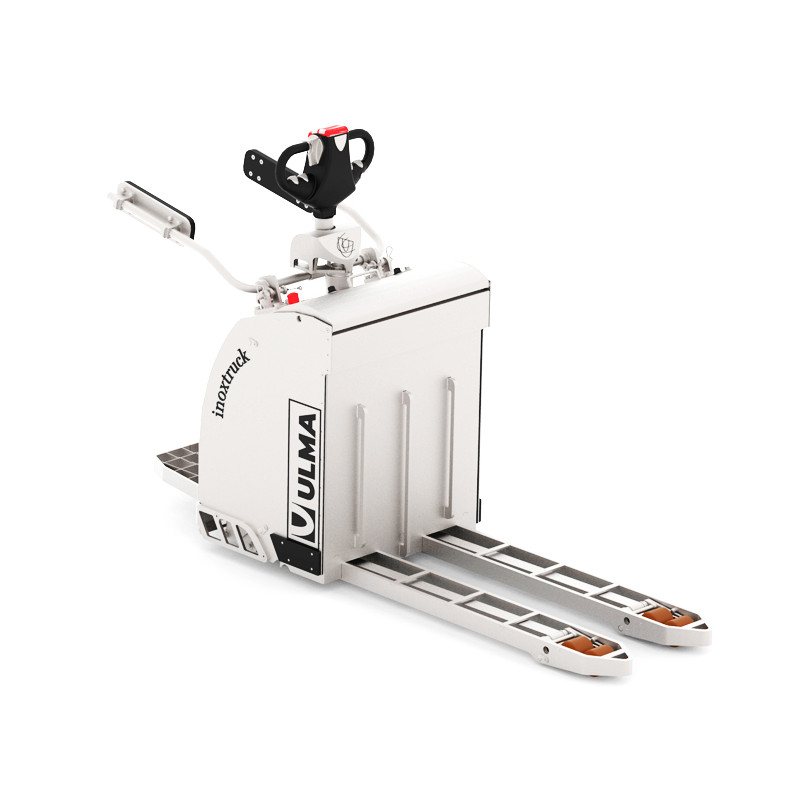 Esta transpaleta es ideal para transportar productos en largas distancias en salas de producción. Algunas características de esta transpaleta son su plataforma antideslizante con suspensión y sus brazos de seguridad con protección para las caderas, que hacen más seguro el transporte de carga. Además, posee un diseño higenizable que permite limpiarla sin afectar su funcionamiento.