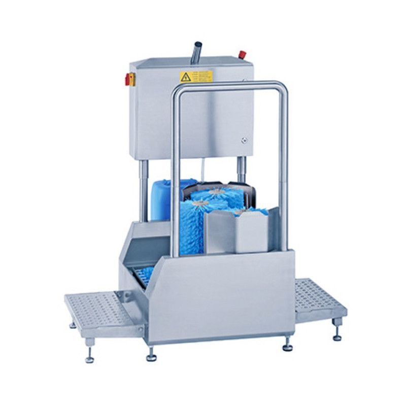 El limpiabotas de paso modelo 23830 es un equipo para la limpieza continuada de las cañas y las suelas de las botas. Mediante su superficie antideslizante, las guías de paso, los rieles y los peldaños de los escalones proporcionan una posición segura en el proceso de higiene necesarios para zonas de producción.
