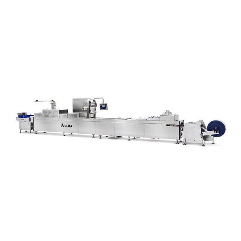El equipo TFS 700 es el top de línea de la nueva gama de termoformadoras Ulma. Creada para sobrepasar las exigencias de envasado de productos alimenticios. Este equipo cuenta con una total adaptación en cuanto formatos de envase y producción. Además su estructura configuraba permite soluciones versátiles y flexibles.