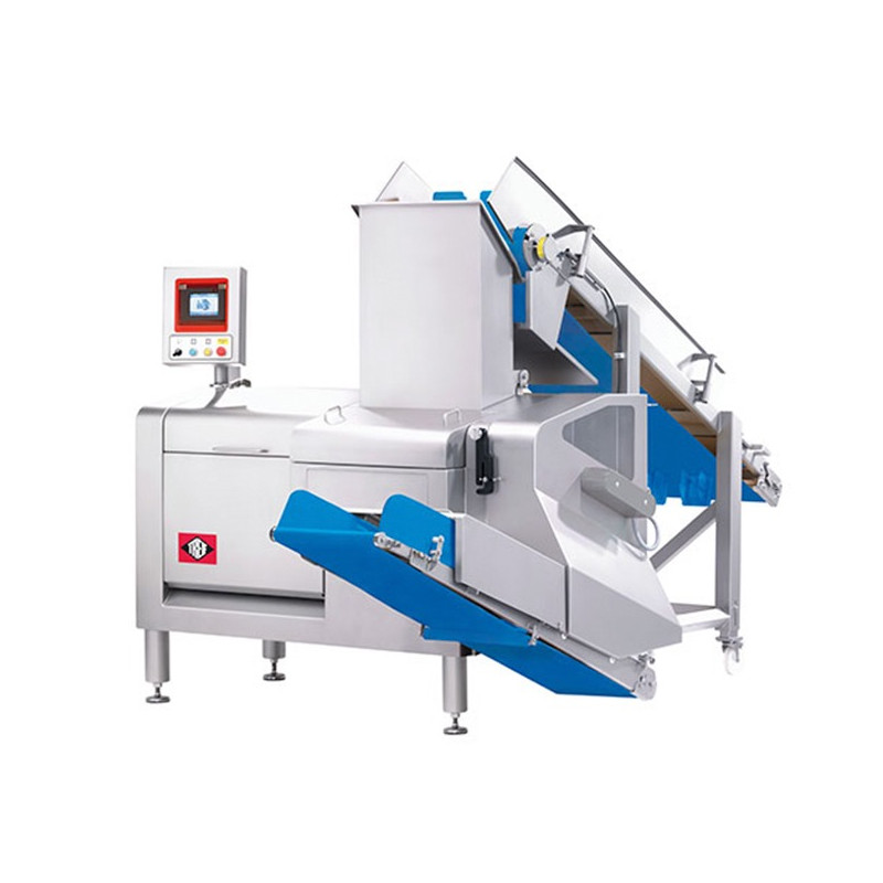 Esta cortadora de cubos industrial, ofrece los mejores resultados de corte, tanto con bloques de carne congelada y productos congelados, como con carne fresca, demostrando ser un garante de la seguridad de sus procesos. Al mismo tiempo su diseño higiénico está pensado hasta el más mínimo detalle.