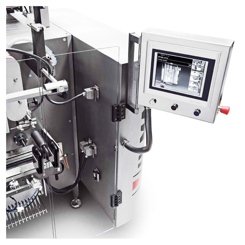 El modelo VTI 500 realiza un envase de tres soldaduras. Es una máquina diseñada para el envasado de una gran variedad de productos tales como líquidos, pastosos, polvos, granulados, congelados (IQF), snacks y más.