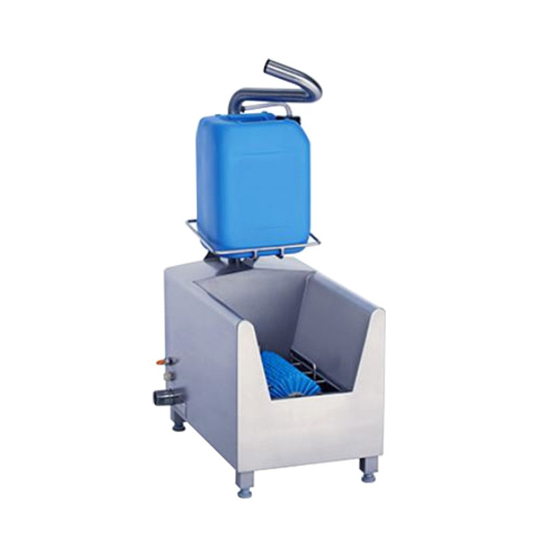 El limpiasuelas modelo 23850 es un dispositivo único para la limpieza y desinfección de las suelas de forma fácil y segura. El cepillo, fácilmente desmontable, garantiza una óptima higiene de la máquina.