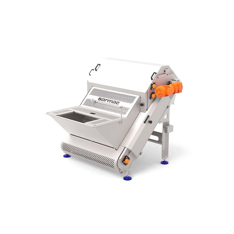 La cortadora para procesado Sormac tipo WSS está hecha para cortar grandes cantidades de zanahorias en paralelo, por ejemplo para la fabricación de minizanahorias.