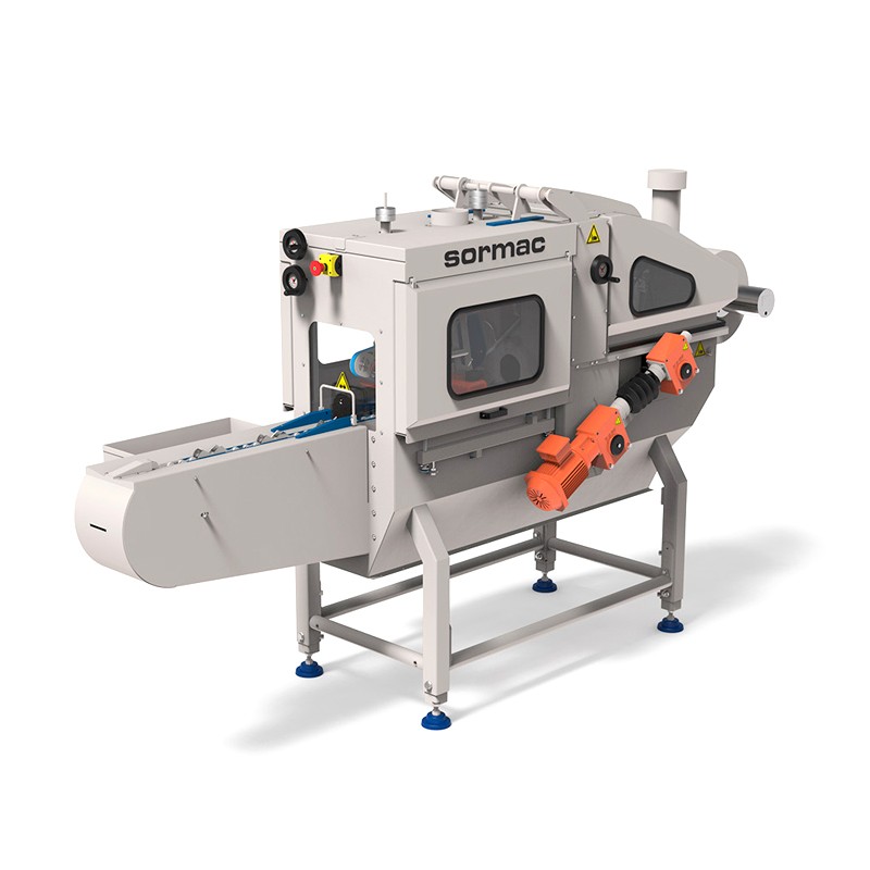 La peladora de cebollas Sormac USM-S60 está equipada con una pequeña cuba de almacenamiento en la que se colocan las cebollas sin pelar.