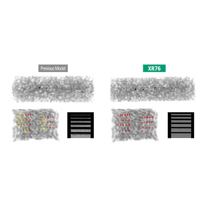Este sistema de Rayos X posee una avanzada mejora en su sensor y en la tecnología para la detección de cuerpos extraños (metales, vidrios, piedras, etc.), lo que logra reducir significativamente los falsos rechazos. Además, incorpora inteligencia artificial, tecnología de larga vida útil y mantiene un óptimo rendimiento incluso en líneas de alta velocidad.